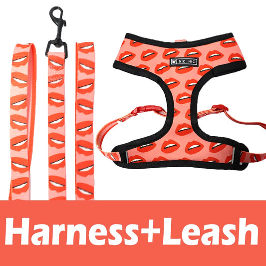 Hundegeschirr und Leine, Stickerei, atmungsaktiv, verstellbar, Snacktasche, Haustiergeschirr für kleine, mittelgroße Hunde, Katzen, Weste, Hundezubehör
