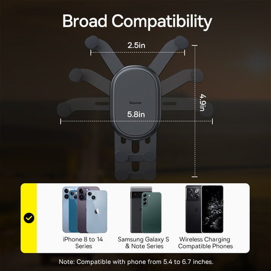 Baseus Autotelefonhalter, Drahtloses Autoladegerät für Lüftungsschlitzhalterung, Schnellladung für iPhone 12, 13, 14 Unterstützt Xiaomi Huawei
