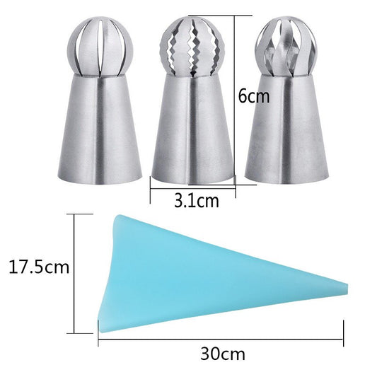 4 Silikon-Küchenzubehör, Zuckerguss, Spritzbeutel, Creme, Gebäckbeutel + 3 Edelstahl-Düsen-Set