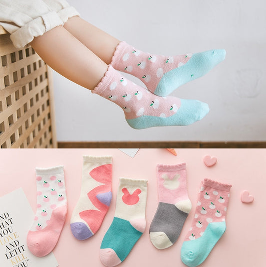 5 Paare/Los 1 bis 10 Jahre Frühling Herbst niedliche Kaninchensocken auf Mädchen, Mode Auto Muster Socken für Jungen weiche Kindersocke