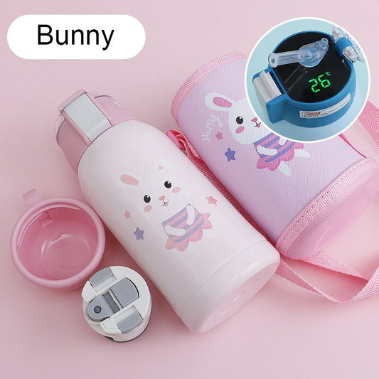 500 ml Cartoon Smart Temperaturanzeige, Thermosbecher Tragbare Pressstroh Stil Wasserflasche, Hält 24 Stunden warm und kalt für Babys