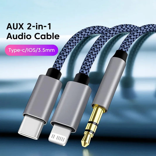 2 in 1 Aux Audio Cable Type C/Lightning To 3.5mm Male Cable For Car Headphone phone USB C IOS to 3.5mm Aux Converter Jack Cable