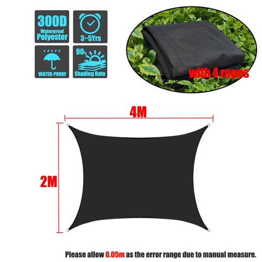 Schwarzes 420D wasserdichtes quadratisches Rechteck Sonnensegel-Gartenterrassen-Überdachungs-Schwimmsonnenschutz