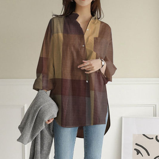Women Kaftan Long Sleeve Blouses ZANZEA Casual Loose Work Shirt Pockets Asymmetrical Chemise Autumn Plaid Tops
