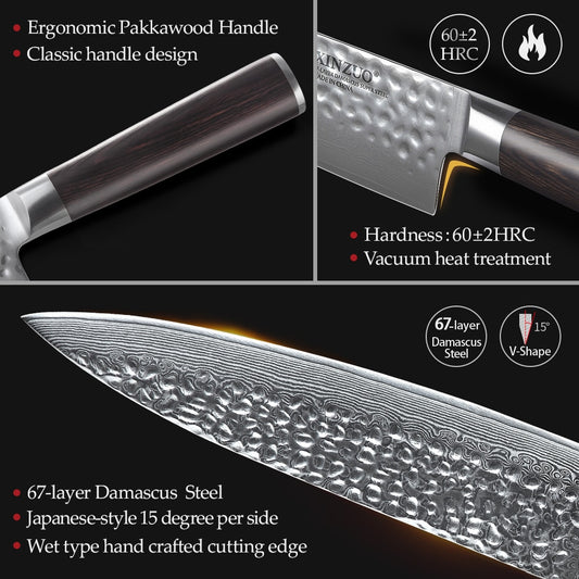 XINZUO 5PCS Kitchen Knives Set Japanese Damascus Stainless Steel New designed Knife Cleaver Nakiri Knife with Pakkawood Handle