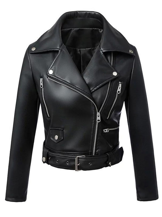 Zipper Grundlegende Lederjacke mit Umlegekragen, Motor Biker Jacke mit Gürtel
