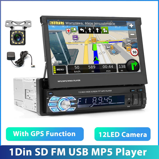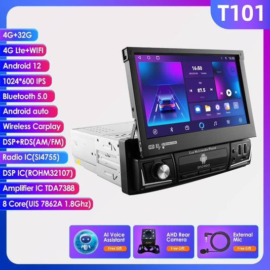 Hizpo Android 12 Universal 1din Autoradio, CarPlay GPS Navigation, Multimedia Player 1 Din Stereo 7 Zoll manuell einziehbarer Bildschirm