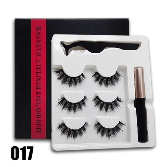 3 Paar 3D-magnetische Wimpern und flüssiger Eyeliner-Kit, natürlicher Look
