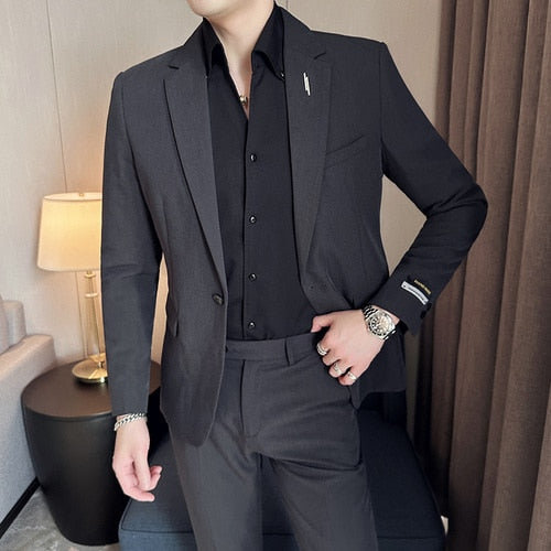 2023 Lässiger zweiteiliger Anzug für Herren mit neuer Textur, hochwertiger Slim-Fit-Anzug mit Jacke und Hose, strukturierter Slim-Fit-Anzug