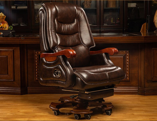 Leder-Chefstuhl, Business-Massage-Chefsessel, Massivholz-Bürostuhl, Liege-Lift-Drehstuhl, Heimcomputer-Stuhl
