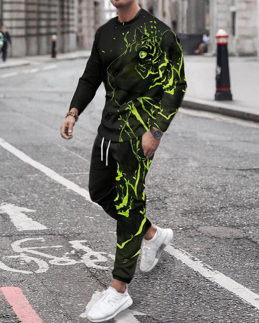 • Herren Jogging Trainingsanzug mit 3D-Druck, lose 2 Teilige Strassenmode