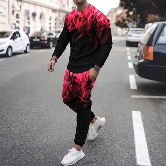 Herren langarm T-Shirt mit Flamme Muster, Sommertrend mit langer Hose