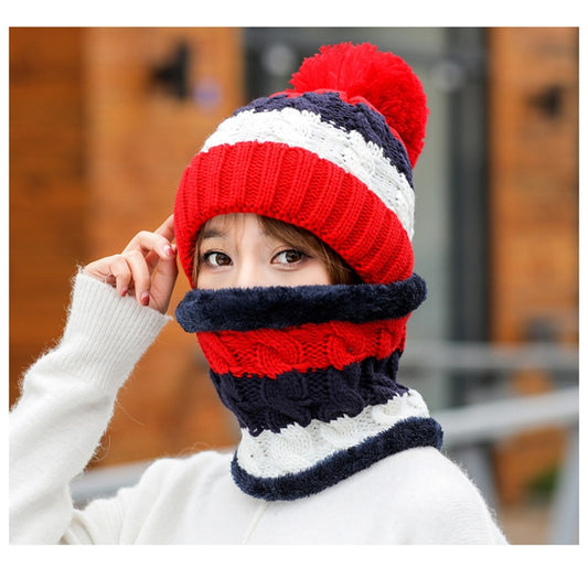 Nackenwarme gestrickte Wintermütze für Frauen, Maske Bonnet Schal-Mütze