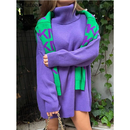Damen Rollkragen-Strickpullover, Figurbetontes Pulloverkleid