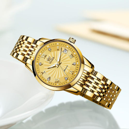 OLEVS Luxus Marke Ladides Automatische Mechanische Armbanduhr Wasserdicht, Edelstahl Einfache Uhr für Frauen