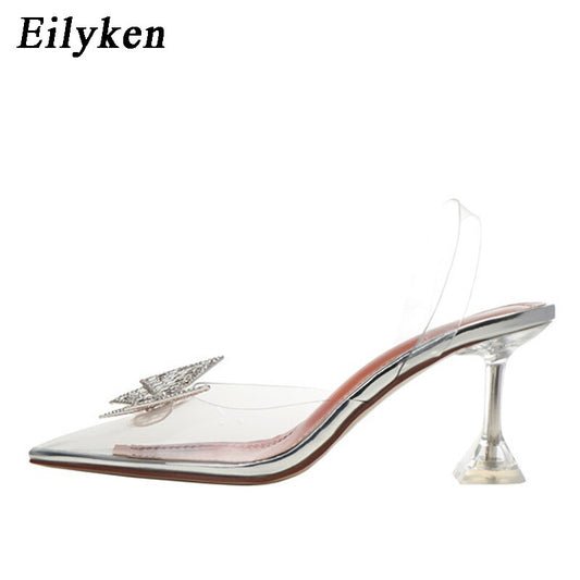Eilyken Größe 34-45 Sommer Schmetterlingsknoten, Frauen Pumps Mode seltsamer Stil Transparent