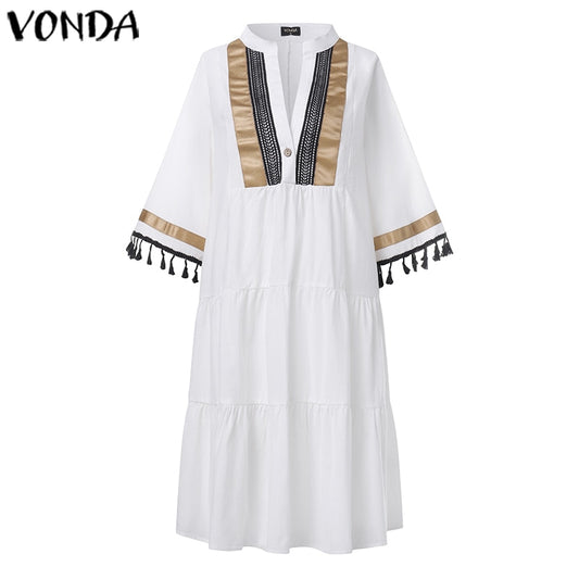 Sommer Strandkleid, Böhmisches Sommerkleid Vintage Print mit V-ausschnitt