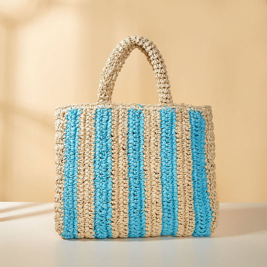 Lässige gestreifte Stroh-Einkaufstasche für Damen, handgefertigt, gewebt, Damen-Handtaschen