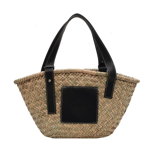 Designer lässige gewebte Rattan-Handtasche mit großer Kapazität, Sommer-Strand-Bali-Stroh-Tasche, großer Korb-Geldbeutel