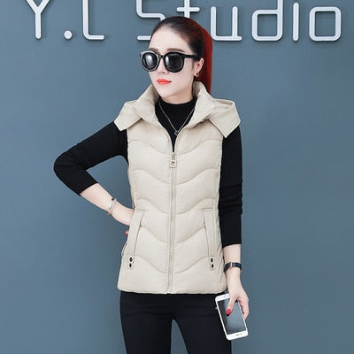 Damen Baumwolle Weste Herbst Winter, NEUE Dünne Kurze Weste mit Abnehmbaren Hut