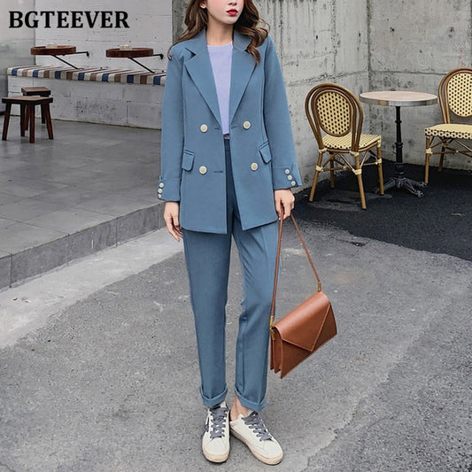 Damenmode Langarm zweireiher Blazer Anzug, Blazer Hosenanzug für Bürodamen