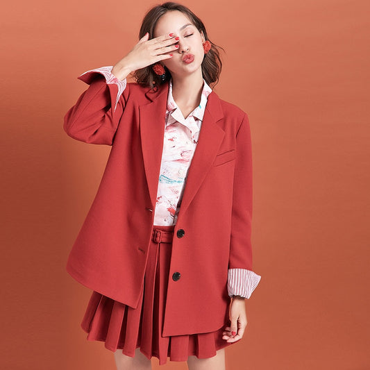 Vintage Sweet Damen Bluse & Mini Rock, Langarm Anzüge 2-teiliges Set