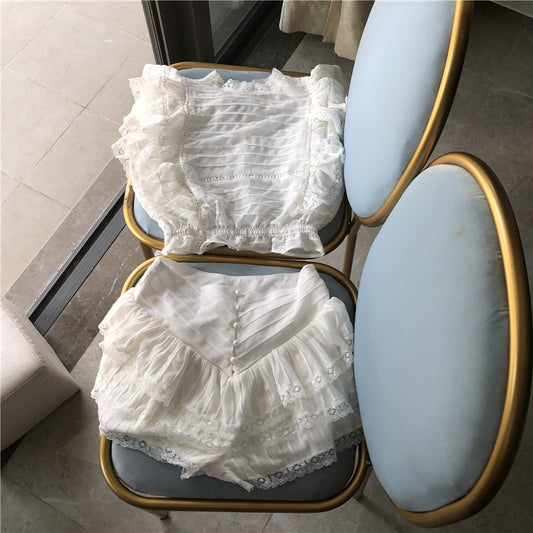 Hohe Qualität 2023 Sunday-Set elastischer Bund, Kurz geschnittenes Oberteil mit Rüschendetail und Mini-Shorts-Röcken