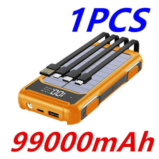 99000 mAh Solar-Powerbank mit Kabel Typ C, schnelles Aufladen, externes Ladegerät für alle Handys, Samsung, Huawei, Xiaomi