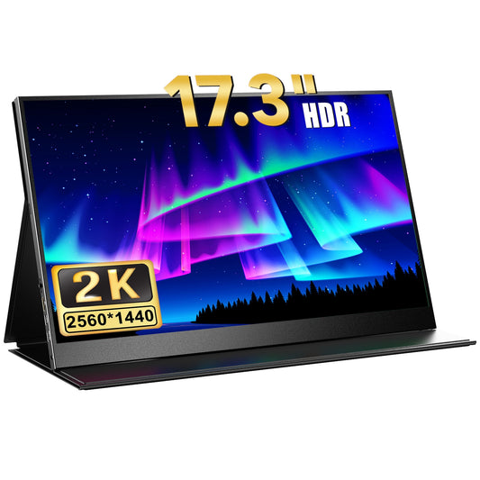 Tragbarer 2K-Monitor 17,3-Zoll-IPS-Bildschirm mit schmaler Lünette USB C /HDMI, Externes großes Gaming-Display für Laptop-PC-Mac-Telefon
