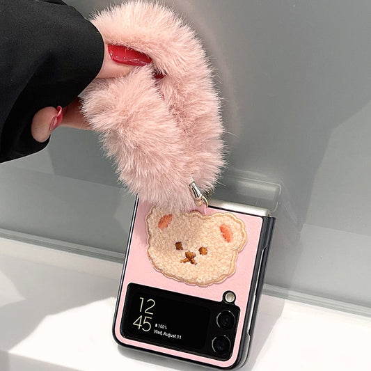 Plüsch Pink Bear passend für Samsung Galaxy zflip3 Handyhülle, Herbst- und Winterhand zflip Ring Handyhüllen