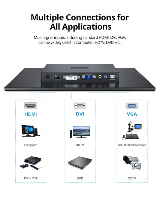 Tragbarer 13,3-Zoll-HDR-1080P-IPS-Monitor mit VESA-HDMI-VGA-DVI-Industrieeingang, 1000:1-Kontrastverhältnis, IPS-Touch-Display