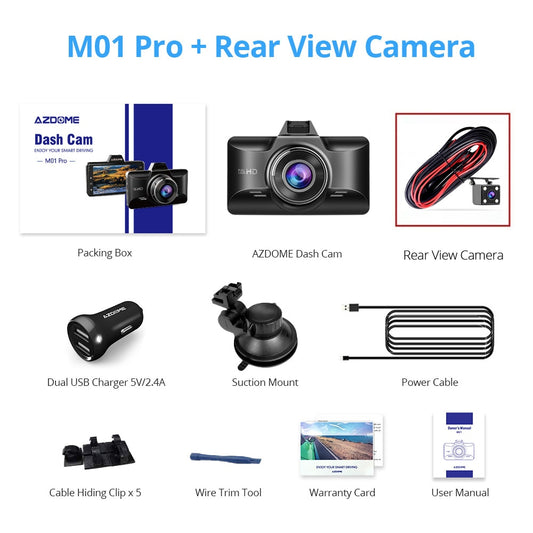 AZDOME M01 Pro FHD 1080P Dash Cam 3 Zoll DVR Autofahren Recorder Nachtsicht, Park Monitor, G-Sensor, Loop-Aufnahme für Uber