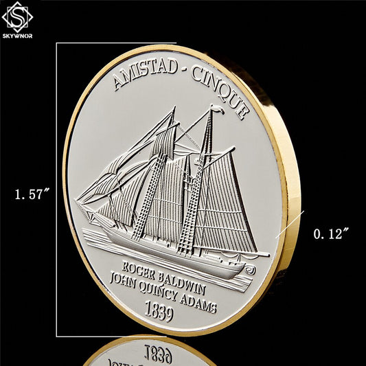 1839 American Civil War Boat Amistad Anniversary Gold & Silver USA Challenge Coin Collectibles