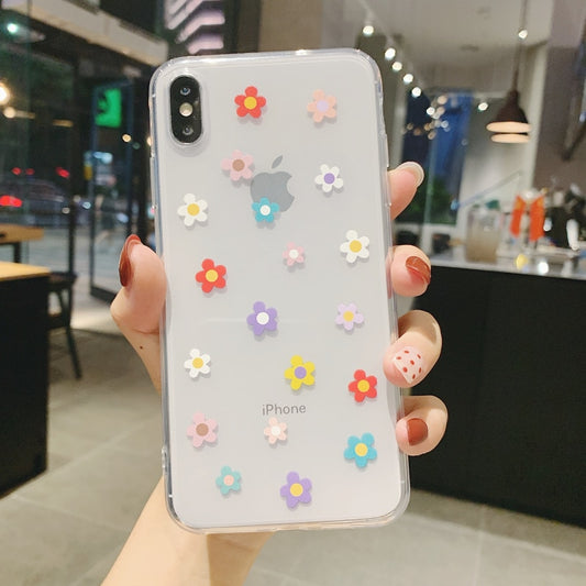Klare Cartoon Bunte Blumen Handyhülle für iPhone 13, 12, 11, 14Pro Max, X, XR, XS, Max, 12 Mini 6, 6s, 7, 8 Plus, SE, Süße Soft Shell