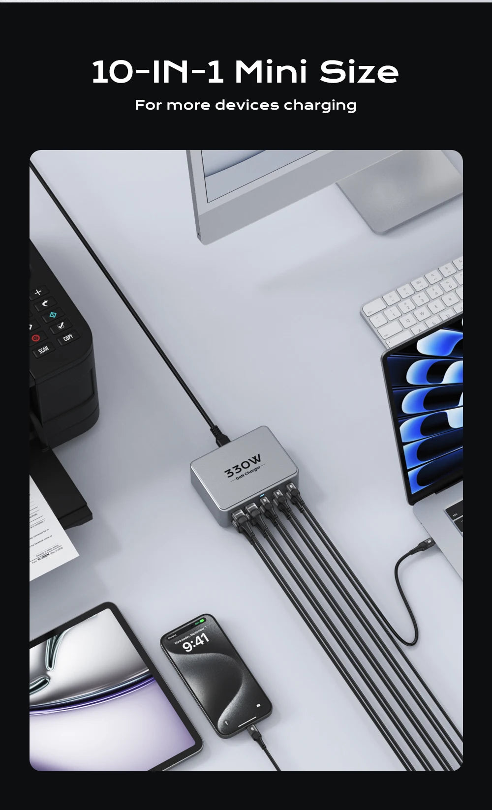 330W USB C GaN Charger 100W PD3.0 PPS QC3.0 Multiport Fast Charging Station For Laptop iPhone 15 16 Samsung Macbook Pro Tablet
