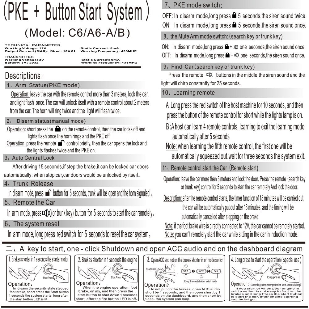 Erleben Sie unübertroffene Sicherheit und Komfort mit dem 12V Universal Autoschlüsselloses Zugangssystem, Motor Start Alarm System Ein-Knopf Start/Stopp System Fernstarter Stop.