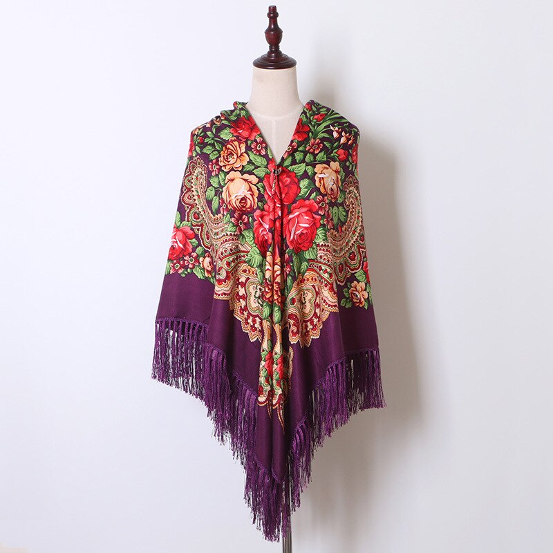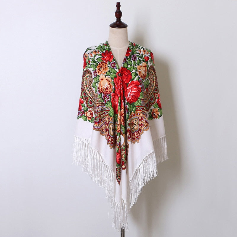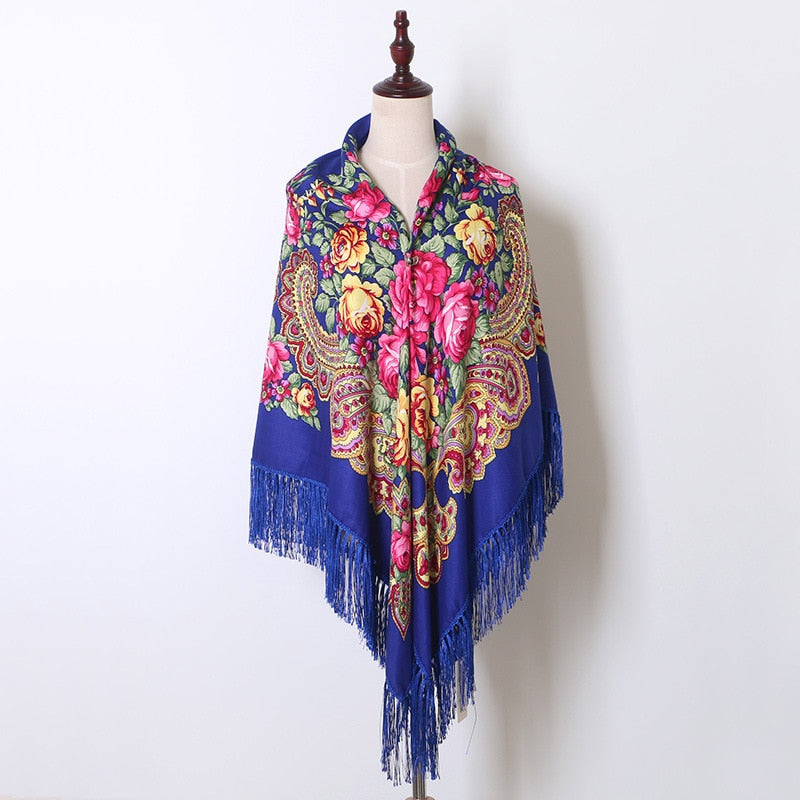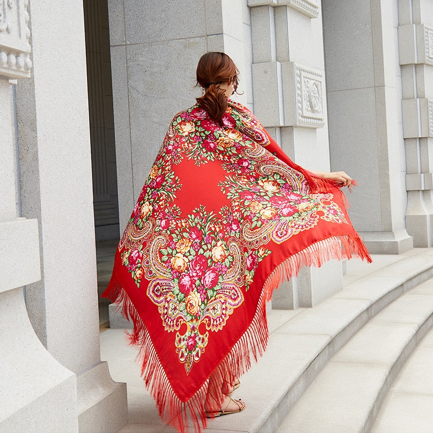 160 cm Frauen Russische Nationale Babuschka Schal, Quaste Blumendruck, Baumwolle Kopftuch