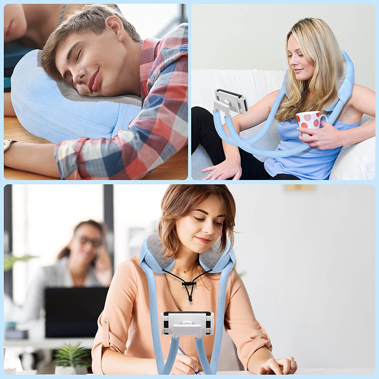 2-in-1 U-förmiges Telefon-Nackenhalter, Nackenstützkissen mit Schwanenhals, Tablet-Telefonhalter