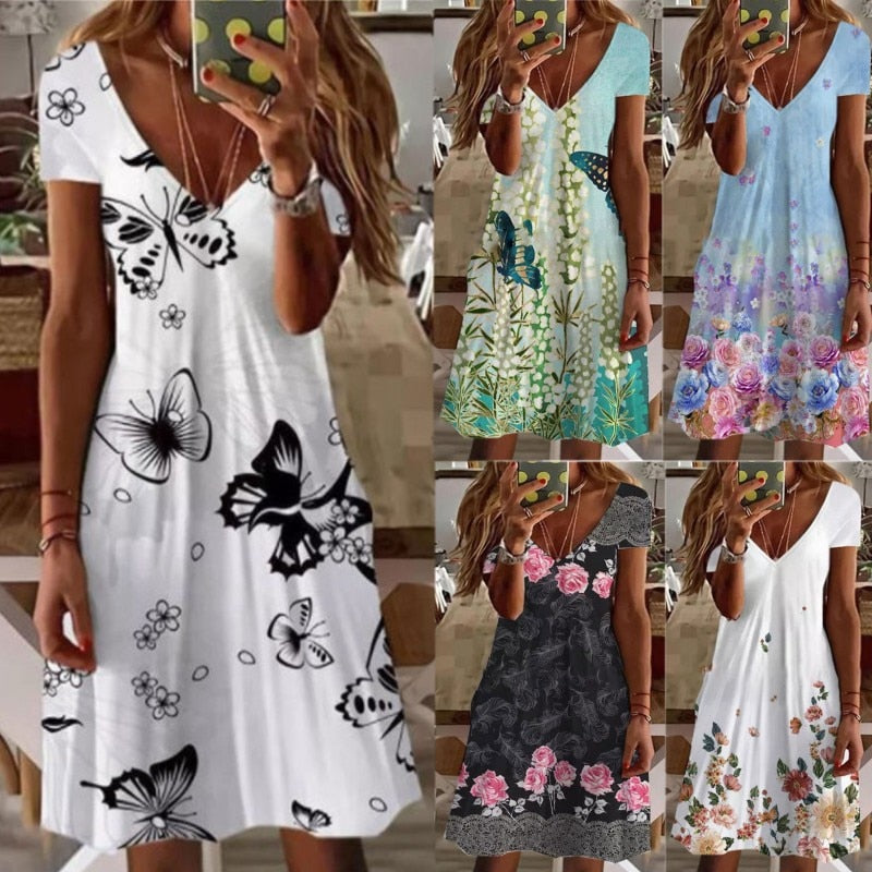Unser 2023 Sommer Damen Mini Kleid mit V-Ausschnitt ist die perfekte Wahl für die heißen Sommermonate. Es ist aus weichem Stoff gefertigt und verfügt über einen femininen V-Ausschnitt, kurze Ärmel und einen sexy Blumen Druck, der das Kleid zu einem absoluten Must-Have macht. Verleihe deinem Look mit diesem charmanten Kleid einen Hauch von Sommer-Glamour.