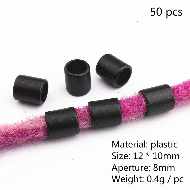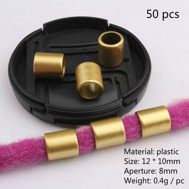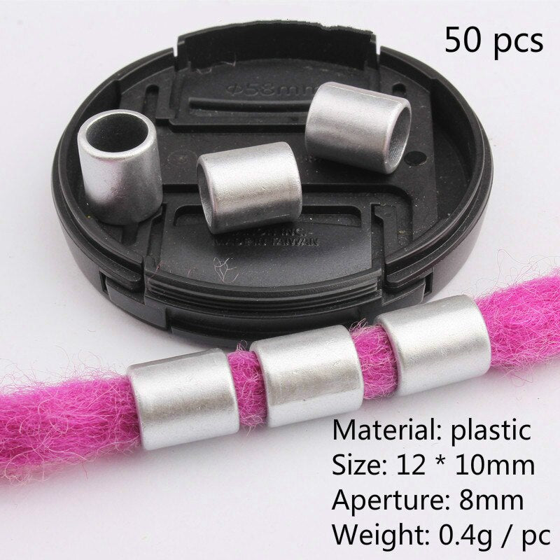 Diese 50–200 Stück afrikanischen Haarringe sind aus hochwertigem Plastik hergestellt und bieten eine hervorragende Haltbarkeit. Mit Gold- und Silberperlen-Charms sind sie ideal für Dreadlocks, Zöpfe und Haaraccessoires geeignet. Eine einzigartige Dekoration für jeden Look.