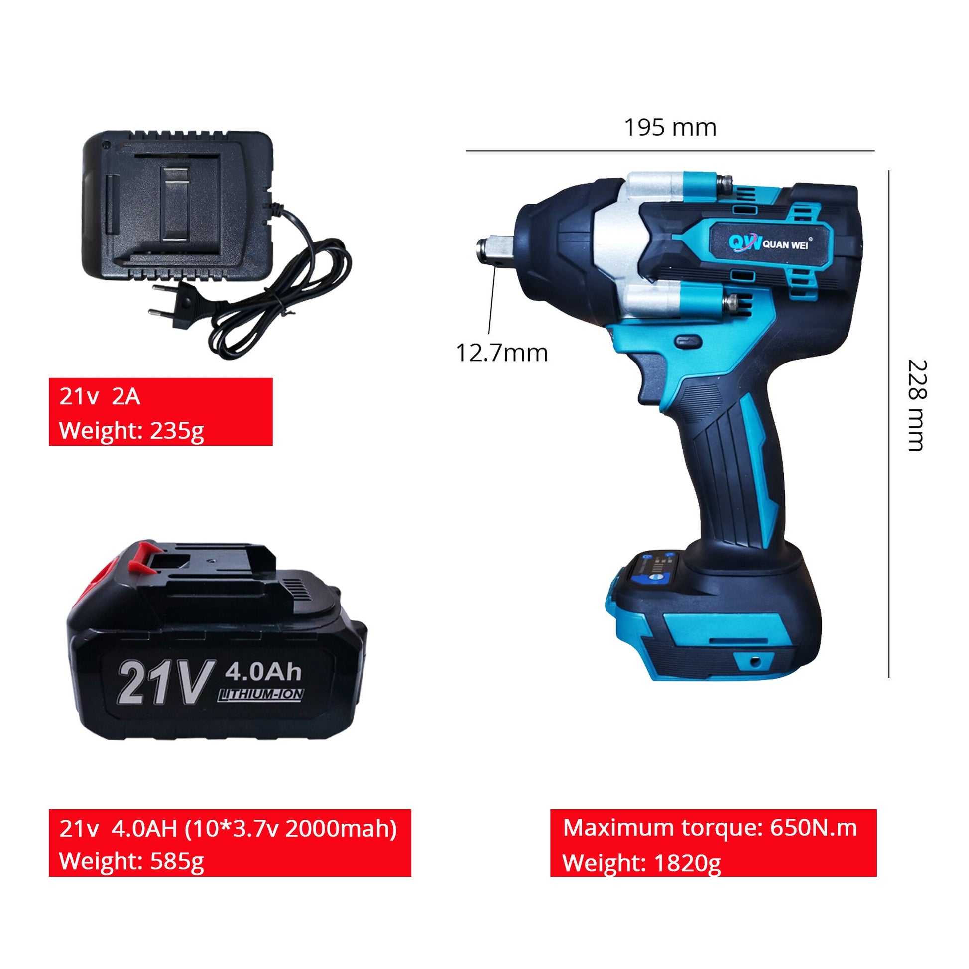 Tragbarer Auto-Schlagschrauber, Elektrowerkzeug, 650 Nm Akku-Elektroschrauber mit hohem Drehmoment
