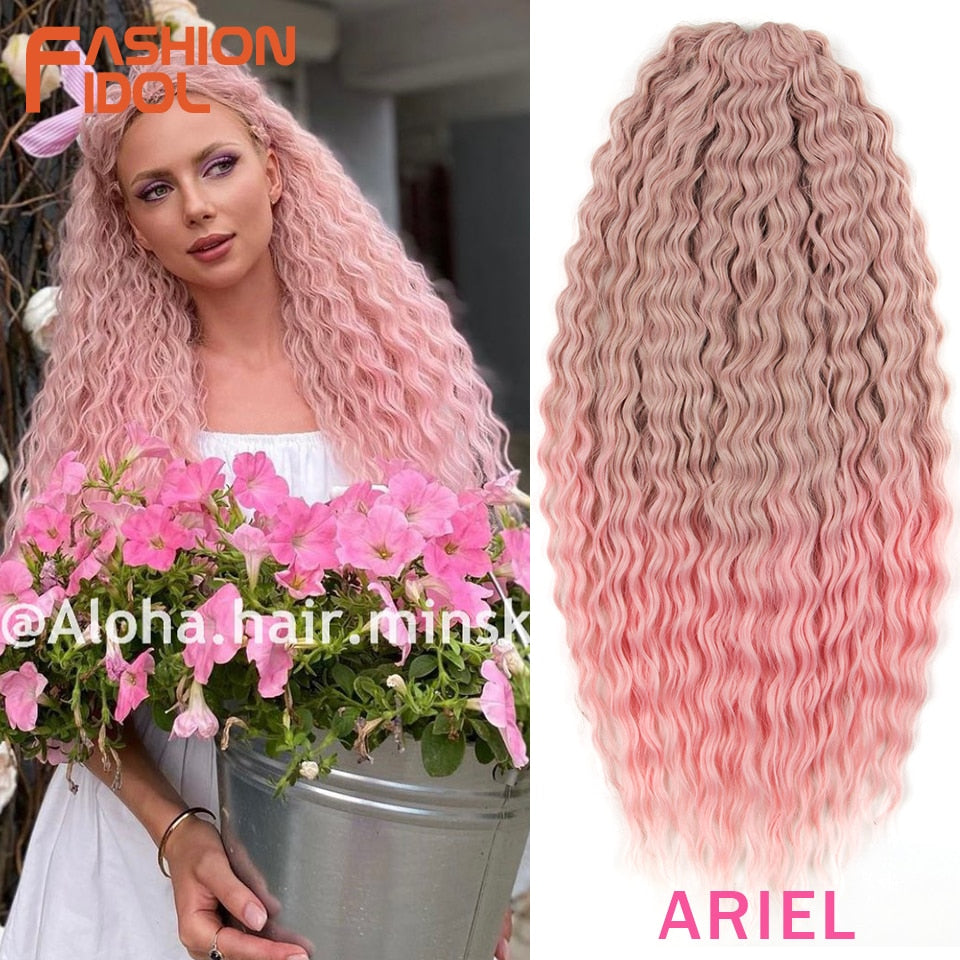 Ariel Curl Hair Wasserwelle Twist Crochet Hair Synthetic Braid Hair Ombre Blonde Pink 22 Inch Deep Wave Braiding Hair Extension