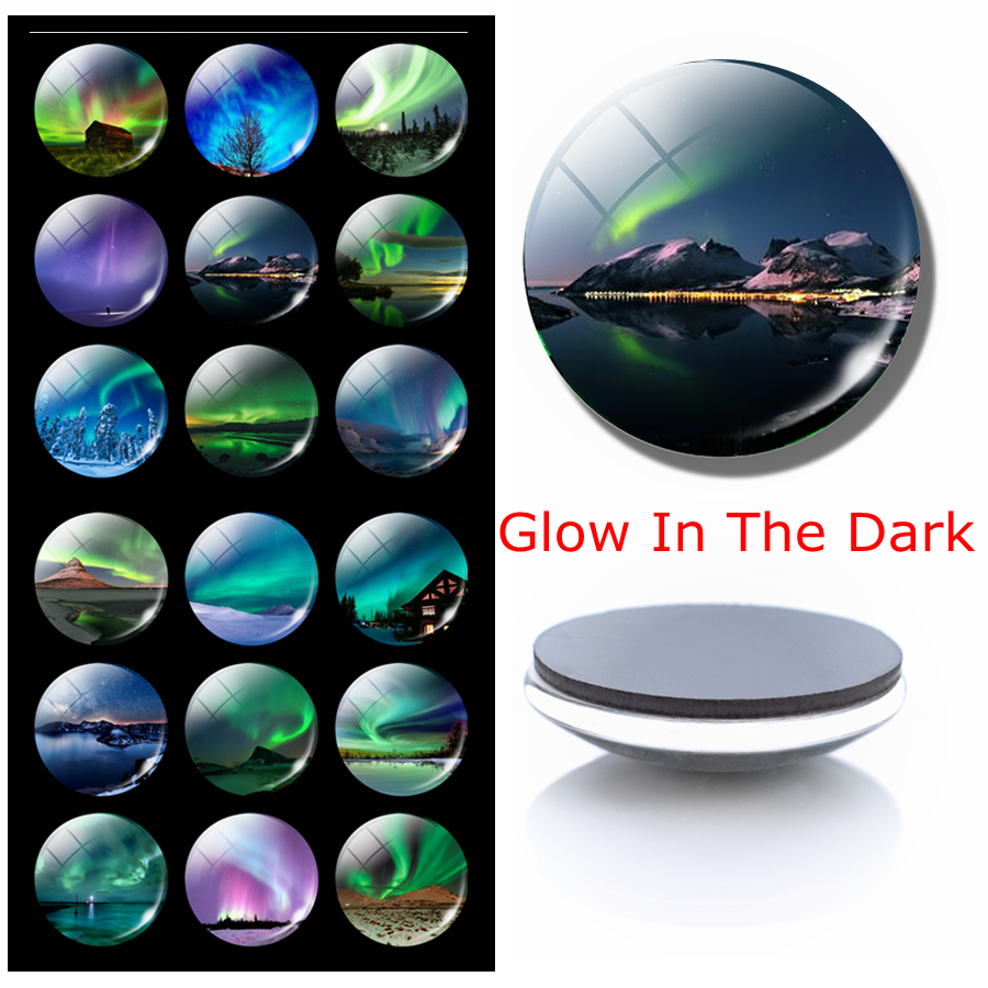 Aurora Luminous Kühlschrank-Aufkleber, magnetisch, im Dunkeln leuchten, neue 30 mm Glascabochon-Kühlschrankmagnete, niedliche Heimdekoration