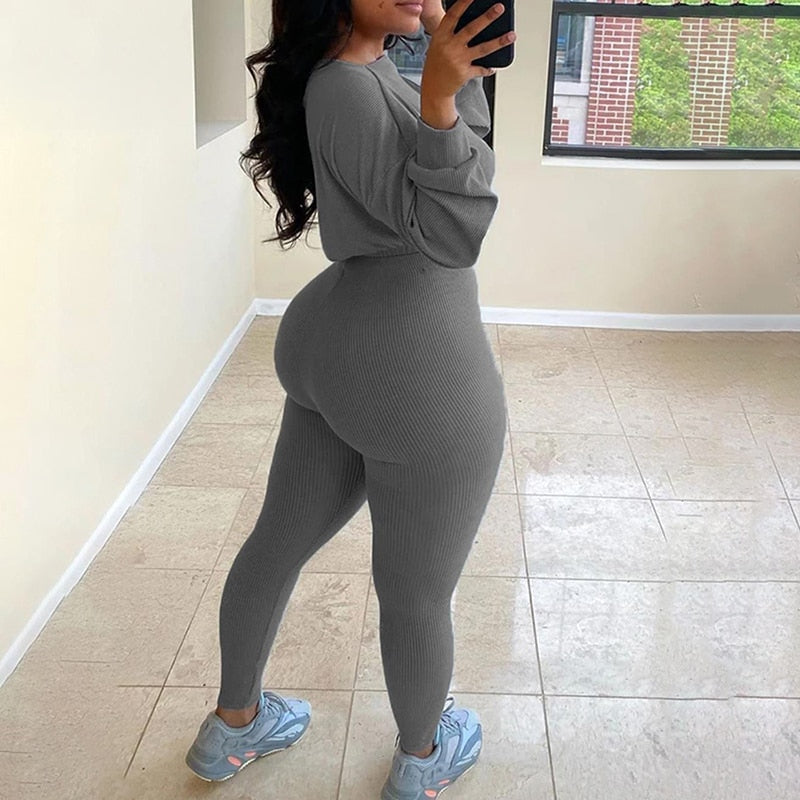 Damen Zweiteiler Basic Sweatshirt + Lässige Sportliche Leggings