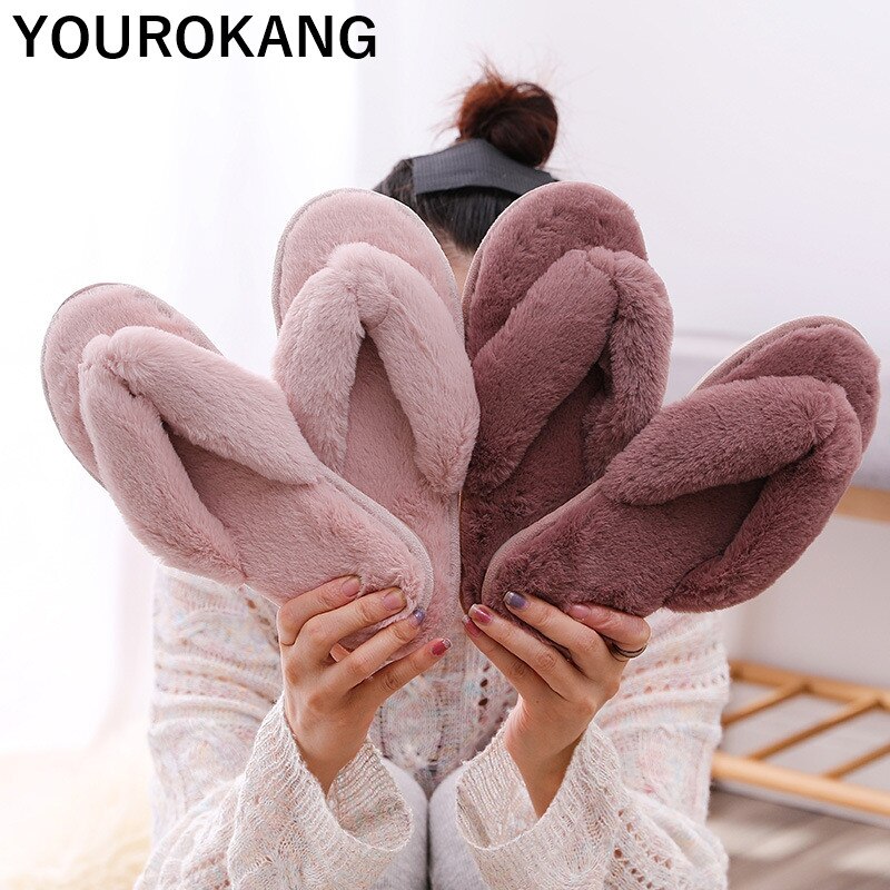 Herbst Winter Frauen Hausschuhe Indoor Boden Flip Flops Mode Pelzigen, warme Pantoffel, Weiche Baumwolle