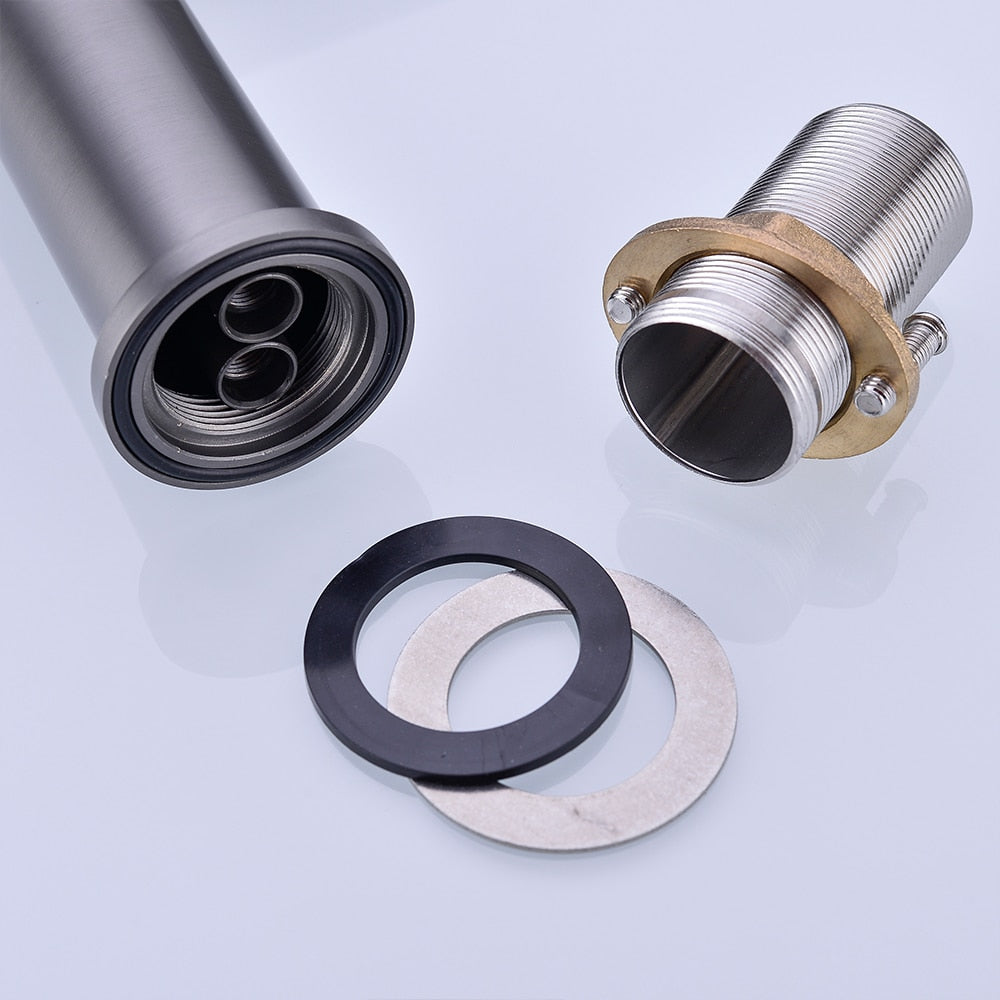 Diese Badezimmer-Mischbatterie aus Massivmessing und Rotguss ist eine ideale Ergänzung für Ihr Waschbecken. Der Waschtisch-Hahn verfügt über einen einzelnen Griff, der Ihnen warmes und kaltes Wasser gleichermaßen zur Verfügung stellt. Die Waschtischarmatur ist sowohl für Deck- als auch für Einlochmontage geeignet.