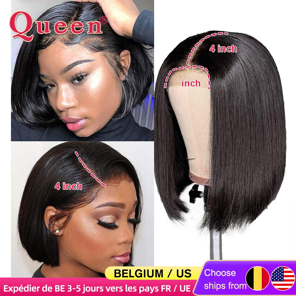 Stumpf geschnittene Bob-Perücke, brasilianische Spitzefront, Echthaar-Perücken, gerade Bob-Perücke für Frauen, Remy, 4 x 4, Spitzenverschluss, Bob-Perücken mit Babyhaar