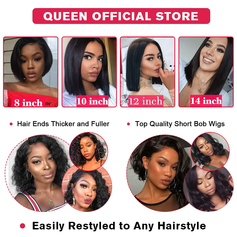 [Farbe der Bob-Perücke]: Natürliche Farbe, gerade Bob-Perücken aus Echthaar mit Spitzenfront, keine Chemikalien. Kann gefärbt, gebleicht, geglättet und gelockt werden, wie Sie möchten.