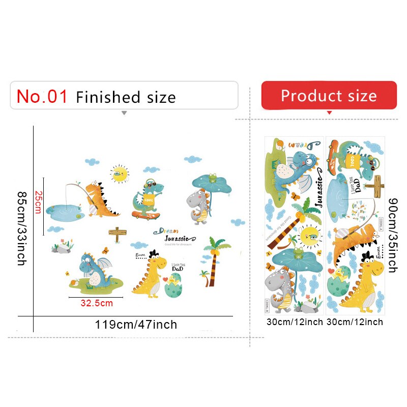 Cartoon-Dinosaurier-Wandaufkleber für Kinderzimmer, Babyzimmer, Wanddekoration, Ceative Vinyl-Raumaufkleber, umweltfreundlicher Heimdekorationsaufkleber