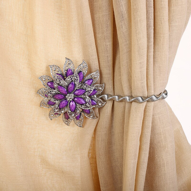 Diese dehnbare Bunte Vorhangschnalle ist aus leichtem Aluminium hergestellt und besitzt eine magnetische Vorhang-Clip, einen Vorhanghalter, Strass und kreativen Riemen. Dies macht sie zum idealen Accessoire für Ihre Blumen-Cortinas.